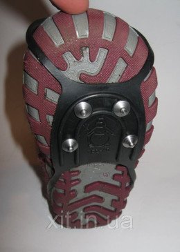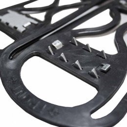 Отличительные черты данной модификации – дополнительный противоскользящий протектор и 6 особо прочных нержавеющих шипов на каждой подошве, т.е. 12 ШИПОВ на паре, благодаря которым ледоступы максимально надежно держат на самом скользком льду.